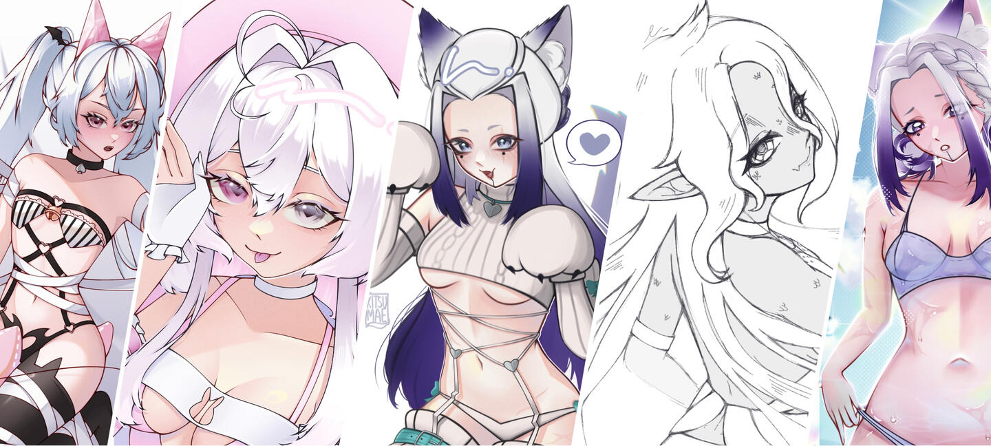 ∙ NO major changes after the sketch phase (pose, expression, outfit, etc.). The only thing I can change is the colors.