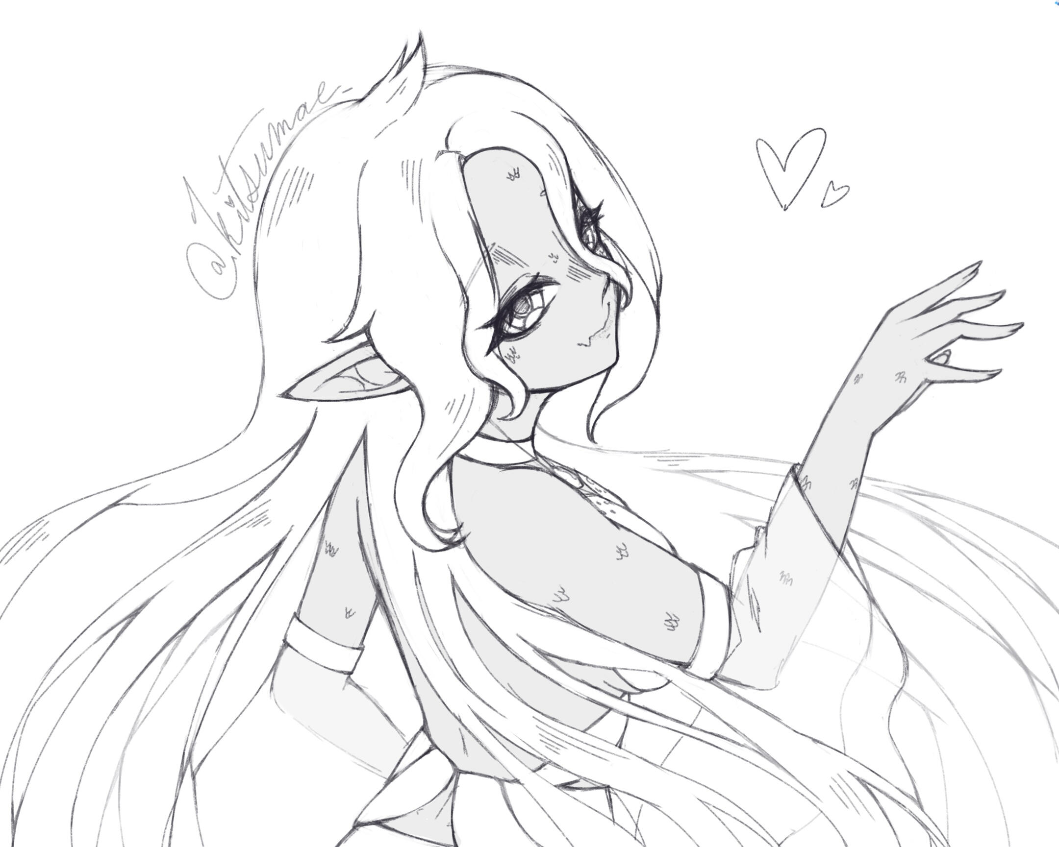 ∙ NO major changes after the sketch phase (pose, expression, outfit, etc.). The only thing I can change is the colors.